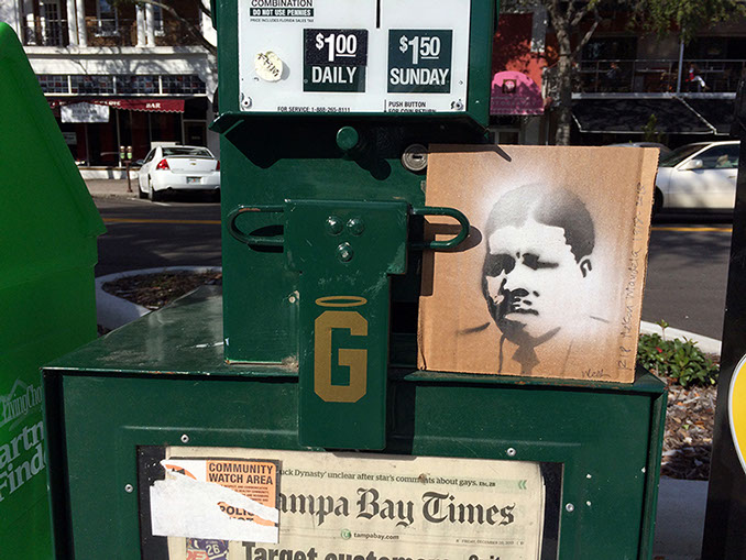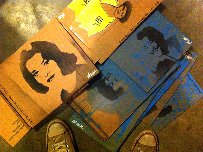 Stencil Portraits of recently deceased famous, distributed for Free Art Friday